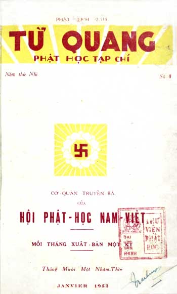 “Song song với Giáo Hội Tăng Già Nam Việt, Hội Phật Học ra đời vào ngày 25.2.1951 tại Sàig̣n; đầu tiên đặt trụ sở tạm tại chùa Khánh Hưng; sau dời về chùa Phước Ḥa Bàn Cờ; rốt sau dời về chùa Xá Lợi.”