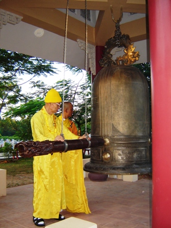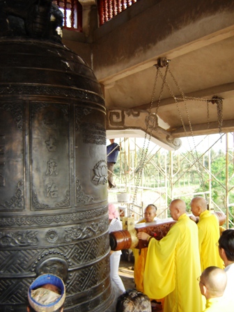 “Trước khi đúc, mọi người dự kiến mỗi vồ đánh chuông có độ ngân từ 35 - 45 giây là đạt yêu cầu, nhưng nay mới đánh thử bằng vồ thường mà tiếng ngân đă dài đến hơn 1 phút. Như vậy việc đúc chuông đă thành công vượt cả sự mong đợi của những người kỳ vọng” - Trụ tŕ Thích Đức Nguyên vui mừng cho biết.