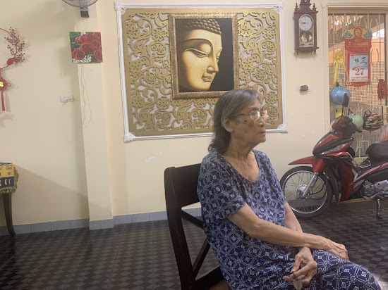 Lần nầy gơ cửa đúng nhà, con gái Nghiễn ra chào chúng tôi rồi mời chúng tôi lên lầu, v́ ngày nay Nghiễn hơi yếu, nên không thể lên xuống thang lầu.