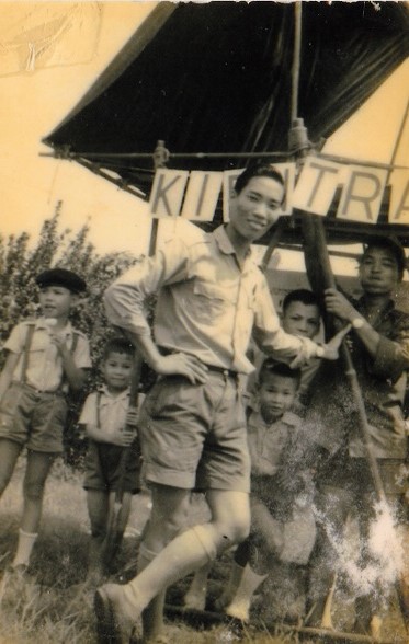 Trưởng Đỗ Khắc Vũ cùng các em Đoàn sinh GĐPT Giác Sơn