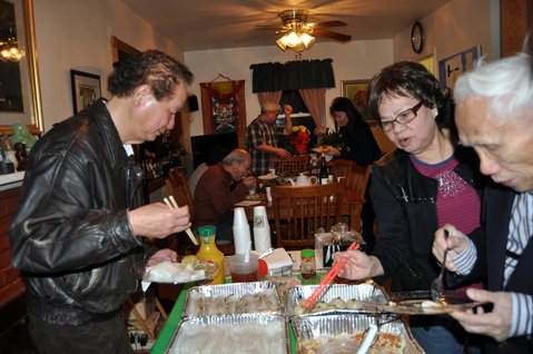 Ghi chú : Trong h́nh có thiếu chị Thanh Minh v́ phải về trước có chuyện nhà. Ngoài ra, một số quư anh chị khác đă không có mặt, gồm: chị Trưởng Lê Thị Dung&Anh Nguyễn Hữu Hiệu (không lái xe tối được và anh chị ở xa chố tư gia chúng tôi đến cả gần một giờ đồng hồ lái xe và vùng này thường bị tuyết và đá trơn trợt), anh Hồ Văn Phú (không thấy liên lạc lại, nhưng có lẽ anh hay đi ...xa...vào mỗi dịp Tết!), anh chị Nữu & Mai (nghe nói là anh Nữu đang đi làm ăn ở một nơi...cũng rất xa...), chị Tố Mỹ (cũng đi chơi Tết ở nơi ....xa...), anh Vương Nghiêm (Về Việt Nam v́ cụ thân sinh không được khỏe). C̣n thiếu ai không hè ??? Chắc tạm hết.