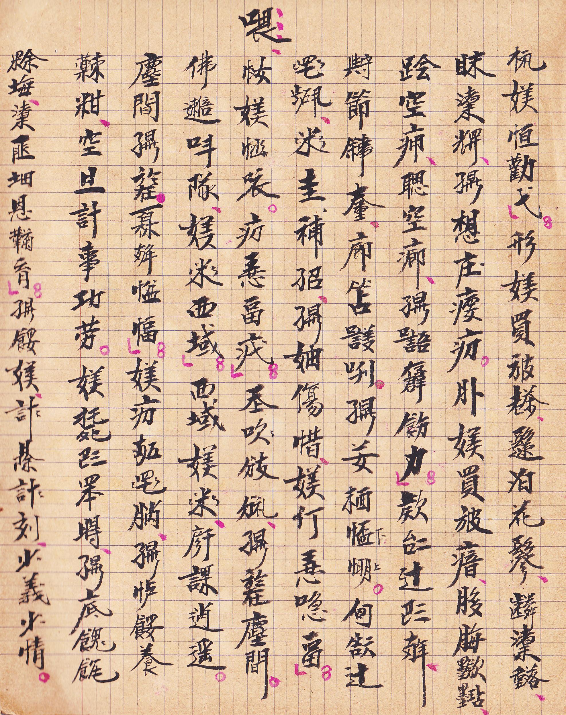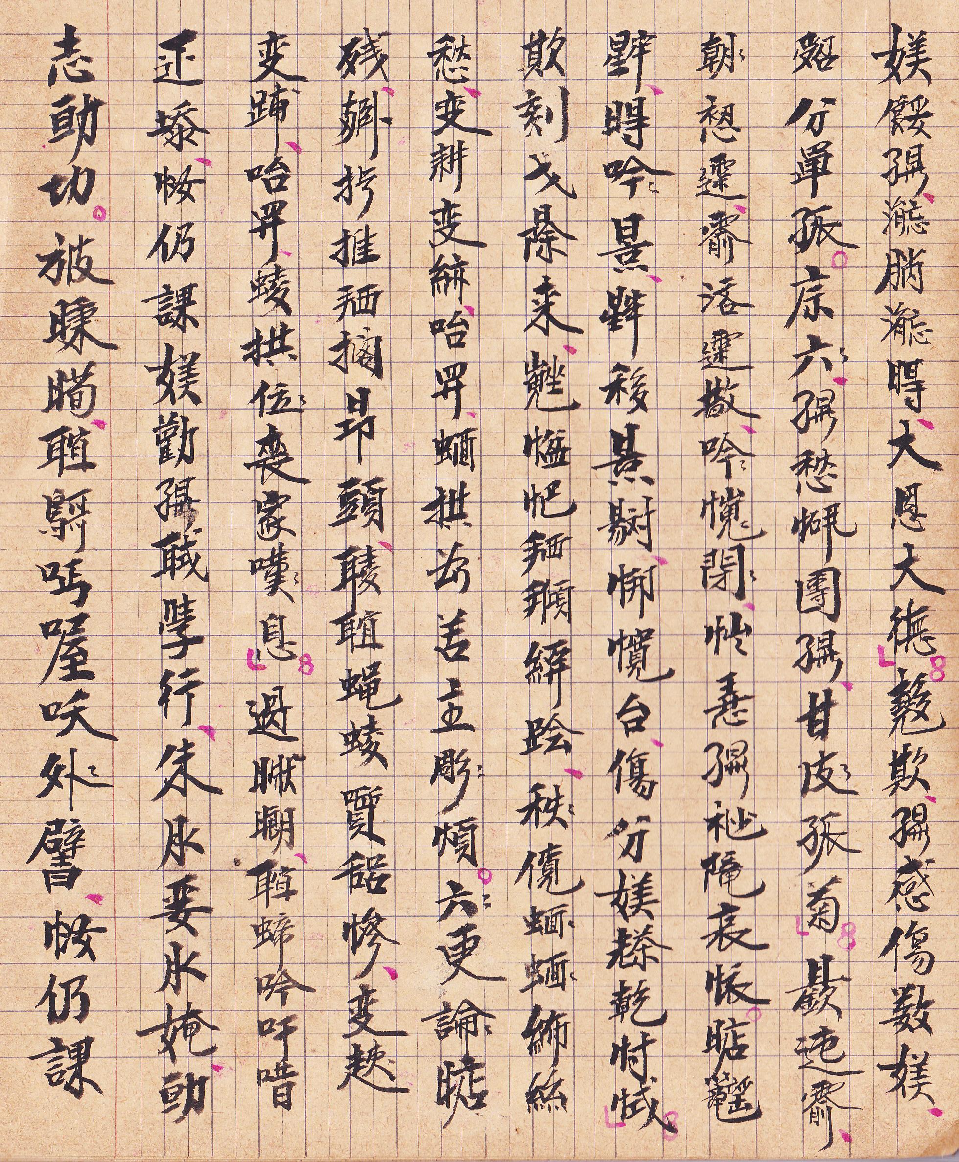 Lúc đêm lụn canh tàn nằm nghĩ suy tay gác ngang đầu nghe thằn lằn chắt lưỡi thảm, biếng chạy biếng ḅ, hay là lằn cũng v́ tang gia than tức!