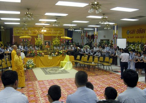 Trước phần Lễ Cầu Nguyện Giác Linh Cố Ḥa Thượng Ân Sư cao đăng Phật quốc do quư Thầy Đạo Quảng, Hạnh Tuấn và Từ Lực chủ xướng, anh chị em được Ḥa Thượng Thượng Thủ Thích Tâm Châu và Ḥa Thượng Thích Nguyên Hạnh ban pháp từ. Quư Ngài kêu gọi anh chị em hăy v́ sự thương yêu của Cố Ḥa Thượng Thích Trí Hiền làm thế nào duy tŕ và phát triển Tổ Chức GĐPT về chung một khối hầu đáp ứng được phần nào hoài bảo của Người đă ôm ấp bấy lâu nay.