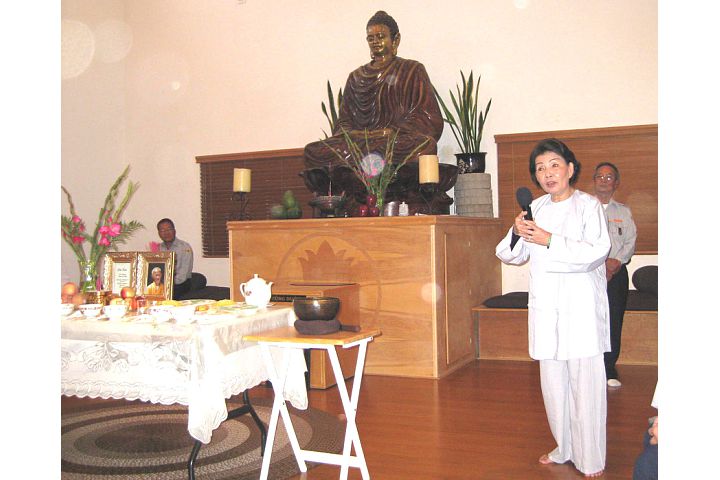 Sau Sau nghi thức lễ Tưởng Niệm Ḥa Thượng của quí sư cô. Trưởng Tuệ Linh hướng dẫn chương tŕnh Tưởng Niệm Ḥa Thượng của AHVN.