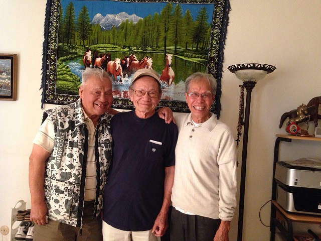 Sau khi Duy ra về, có anh Nguyễn Quang Vui đến thăm, cho tôi một hộp bánh Trung Thu và một gói trà 903, tôi cắt bánh để anh em cùng ăn, chúng tôi tṛ chuyện về những bản nhạc của anh, rồi anh Nguyễn Đ́nh Thống tới thăm, ngày nào bộ tứ chúng tôi Vui, Thống, Thu, Tông. Từ năm 2004, Ngô Mạnh Thu đột quỵ, bộ tứ chúng tôi chẳng khác nào “đại bàng găy cánh”, nhân dịp họp mặt chúng tôi chụp tấm ảnh làm kỷ niệm. Anh Vui tới trước đă lâu, nên anh ra về, anh Thống ngồi lại chuyện tṛ với chúng tôi, anh mời chúng tôi đi ăn, nhưng tôi cho biết tôi có chương tŕnh đi ăn với gia chủ vào buổi chiều và hẹn sẽ mời anh chị Thống cùng dự tại một quán chay do anh Nguyễn Quang Vui giới thiệu.