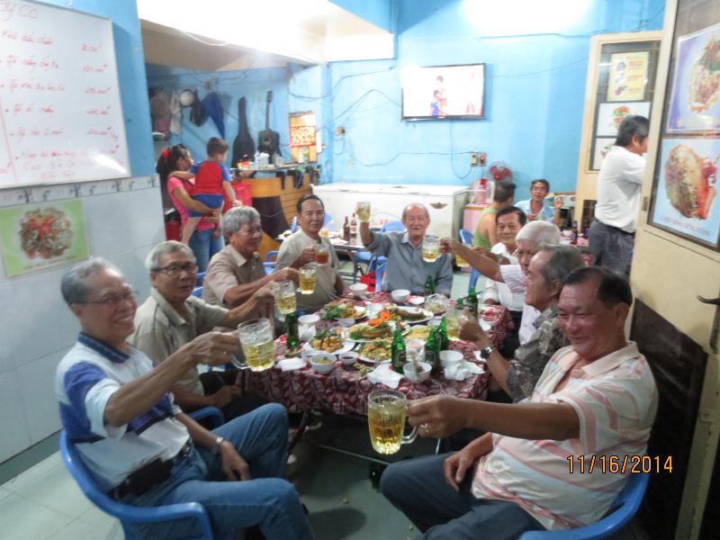 Gặp những đồng môn, học tṛ cũ ở quán ăn trong khu Vườn Bà Lớn, gần Ngă Bảy: