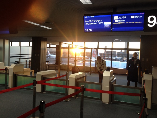 Năm nay cũng như những năm trước, về Việt Nam tôi đều mua vé từ một đại lư ở California, theo đúng lịch tŕnh chúng tôi sẽ bay từ Louisville, Kentucky đến Dallas Fort Worth mất 2 giờ 28 phút. Từ Dallas Fort Worth đi máy bay American Airlines bay đến Tokyo của Nhật mất 13 giờ 30 phút. Từ Nhật đi máy bay Japan Airlines vào Việt Nam mất 5 giờ 50 phút. Vị chi phải ngồi trên phi cơ bay 22 giờ, nhưng thời gian đến phi trường Louisville làm thủ tục và chờ đợi mất 2 giờ, tại Dallas Fort Worth chờ chuyển phi cơ mất 3 giờ, tại phi trường Narita ở Tokyo chờ chuyển phi cơ mất 1 giờ 30, đến Tân Sơn Nhất có làm thủ tục, lấy hành lư nhanh nhất cũng mất không dưới 30 phút mới ra khỏi phi trường, như thế mất khoảng 29 giờ vừa ngồi trên máy bay, vừa chờ đợi chuyển phi cơ.