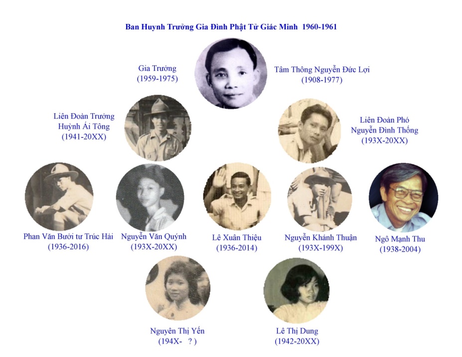 Anh Trần Trung Du là Đoàn Trưởng Tráng Đoàn Bạch Đằng của Hướng Đạo tại thủ đô Sàig̣n, anh Nguyễn Văn Giao người cùng đi sinh hoạt Gia Đ́nh Giác Minh bước đầu với tôi, sau anh nghỉ sinh hoạt rất sớm, rồi đi với Tráng Đoàn, anh Nguyễn Huy Nghiễn cũng là thành viên của Tráng Đoàn, sau nầy tôi lại được biết bạn ồng nghiệp , anh Phạm Văn Tài, nguyên Hiệu Trưởng Trung Học Kỹ Thuật Nguyễn Trường Tộ cũng đi sinh hoạt với Tráng Đoàn nầy. Anh Du là chủ nhân nhà sách Hiền Lương, trên đường Phan Thanh Giản, gần đường đi vào vườn Bà Lớn, cũng gần chùa Giác Minh, anh c̣n hoạt động chánh trị, thuộc Việt Nam Quốc Dân Đảng, sau 1975 anh bị đi học tập cải tạo. Năm 1990, gặp chị Du trong dịp đón Giao Thừa tại chùa Giác Minh, chị cho biết anh vẫn chưa về.