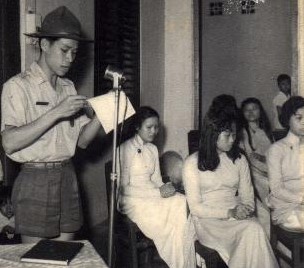 Tôi đọc bài phát biểuTrong dịp Hè đó có dự định tổ chức Trại Họp bạn Ngành Thiếu toàn quốc tại Nha Trang, nhưng bất thành, tôi chẳng rơ v́ sao, mặc dù huy hiệu đă được anh Lữ Hồ vẽ và đă đưa đến cửa hiệu làm phù hiệu, họ đă làm được nửa chừng rồi ngưng.