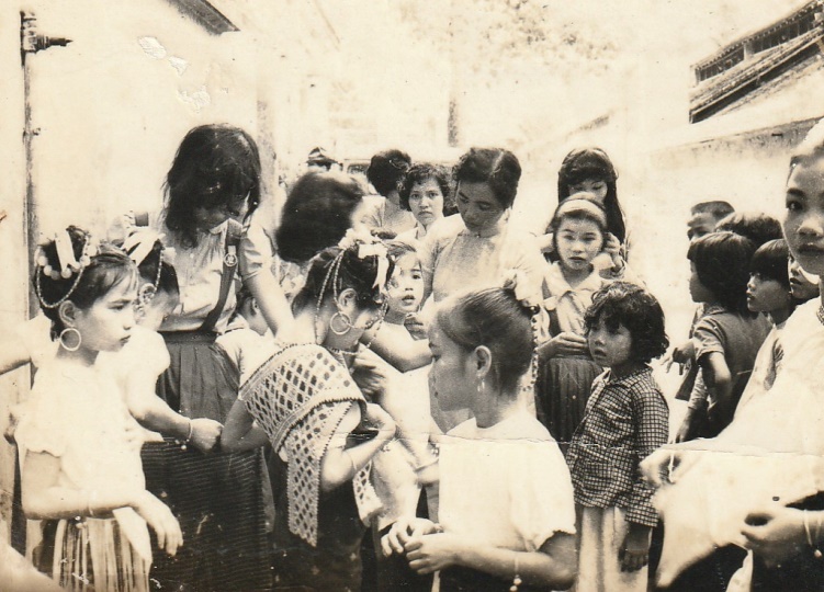 Gia Trưởng Gia Đình Giác Hoa, chị Tâm Huệ đang chăm sóc các em để trình diễnĐó cũng là những ngày đầu Pháp nạn năm 1963, khởi đầu từ thành phố Huế, về sau mới lan rộng các nơi.