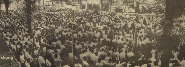 Đồng bào tham dự lễ Cầu Siêu và Tuyệi Thực tại chùa Xá Lợi nh́n từ Trường Gia LongThời gian nầy có nhiều Huynh Trưởng không đi họp, không dám đến chùa Xá Lợi. Thông cảm cho họ, họ muốn lắm nhưng cần phải bảo vệ nồi cơm cho gia đ́nh. Thời đó, người ta chẳng sợ bị bắt, bị đánh đập. Sợ! Người ta không dám tham gia.