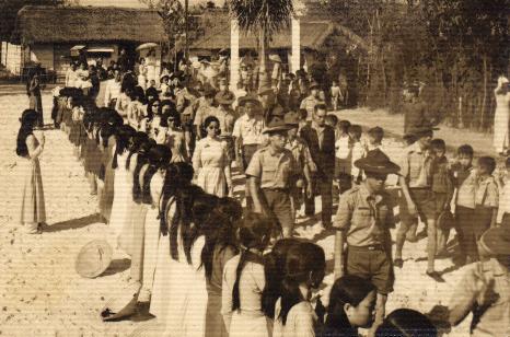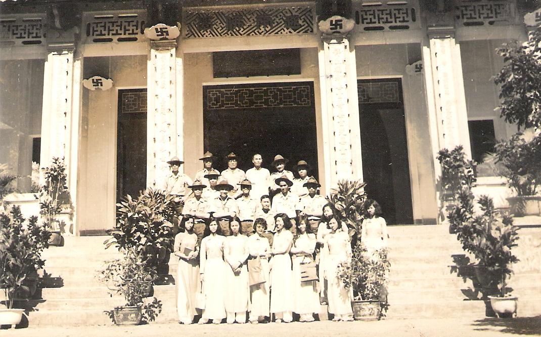 Tại cổng chùa Diệu Đế. Từ trái (1) chị Hoài Chân, (3) Tông, (4) Hiền, (7) Sương. (9) chị NgânNgày 12-1-1964, Phái đoàn đến Đàn Nam Giao tham dự Lễ Khai mạc Trại Họp Bạn Quảng Đức. Trại cắm xung quanh Đàn Nam Giao, cho nên sau khi tham dự lễ, Phái đoàn được hướng dẫn lên Đàn, được giải thích sơ lược những vị trí cúng tế của Vua ngày xưa.