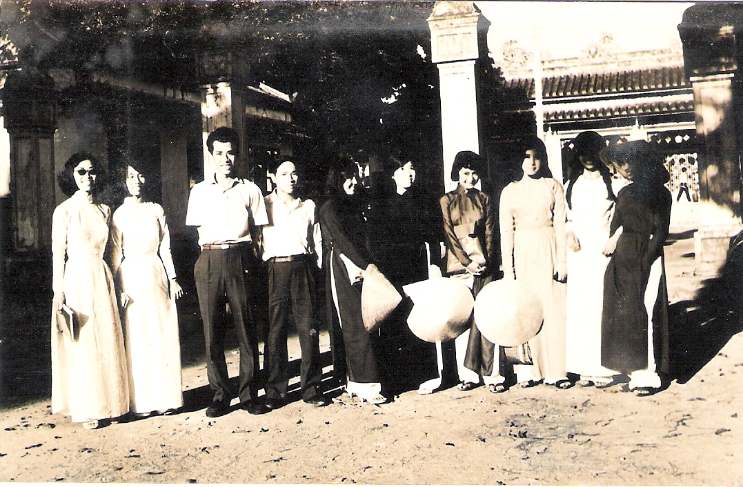 Từ trái: Tuệ Linh, Tông, anh X, Thu, Đắc, Bác ở Huế, Trung. Nam ngồiTrên đường về có ghé viếng Chùa Sắc Tứ Quảng Trị, viếng một Gia Đ́nh Phật Tử ở vùng quê, các em đoàn sinh làm hàng rào danh dự đón chào giữa một buổi xế chiều, nắng gắt chói chan, rồi viếng Gia Đ́nh Phật Tử Mỹ chánh, Gia Đ́nh nầy sinh hoạt nơi ngôi chùa nằm cạnh cầu Mỹ chánh, sau nầy trở nên địa danh nhiều người biết đến trong trận chiến mùa Hè đỏ lửa năm 1972.