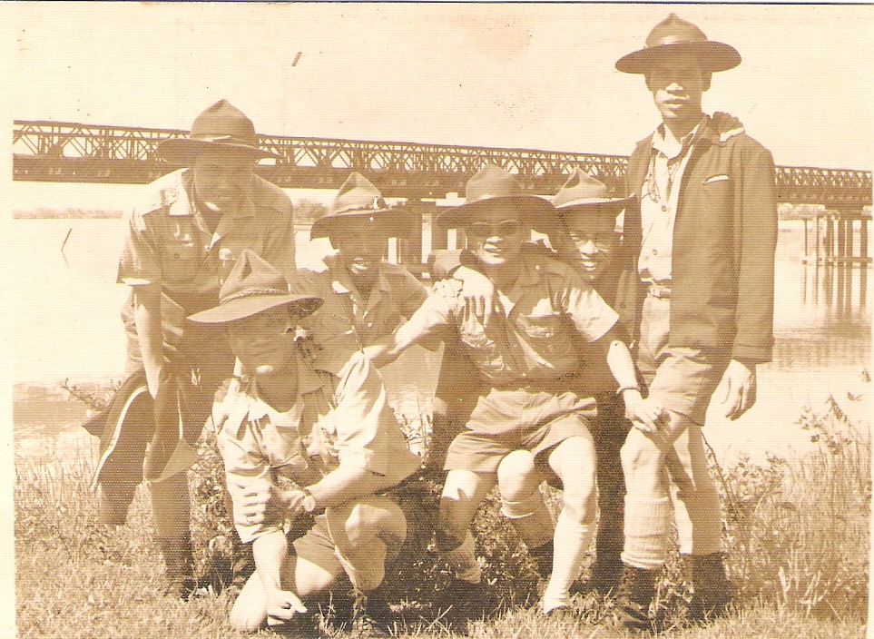 Từ trái: Ry, Ḥa, Đắc, Thạnh, Thu, Tông. Phía sau là cầu Hiền Lương bắc qua sông Bến HảiPhái đoàn có được một ngày ra tận Bến Hải để nh́n về phía bên kia sau bức màn sắt, ngày hôm đó phía bên kia không có treo cờ, cũng không có phát loa phóng thanh, chiếc cầu là để nối giao thông, không ngờ chiếc cầu Hiền Lương lại là nơi ngăn cách, ngăn cách t́nh cảm thiên liêng nhất của con người, t́nh quê hương, thân thuộc, bạn bè.