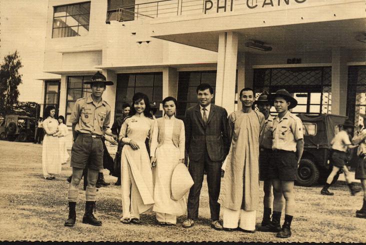 Trước khi chia tay, anh Mai Đ́nh Nam, Nguyễn Khắc Ủy và các cô gái Huế tiển tận phi cơHơn 30 năm rồi, nhiều chuyện trong chuyến đi nầy tôi đă quên, nhưng vẫn không thể nào quên được cái vinh hạnh ngồi trong Hội Trường Chùa Từ Đàm dự Đại Hội Huynh Trưởng Gia Đ́nh Phật Tử Trung phần, vinh dự nầy thuộc về mọi Huynh Trưởng và Đoàn sinh Gia Đ́nh Phật Tử Thủ đô Sàig̣n đă hoạt động trong thời gian Pháp nạn 1963, nhất là một em Nam Oanh Vũ 5 tuổi, thuộc Gia Đ́nh Phật Tử Giác Hoa đă tham gia ngày tuyệt thực vĩ đại 18-8-1963 tại chùa Xá Lợi.
