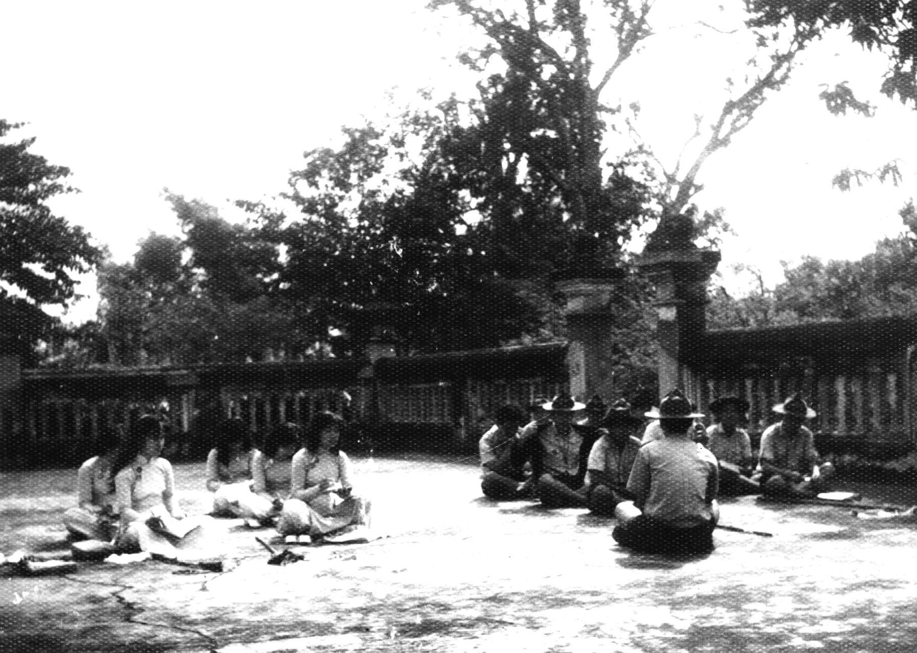 Học tập trong sân chùaTrong lần trại của Khóa II có Đại Đức Ủy Viên Thanh Niên Phật Tử đi thăm trại.