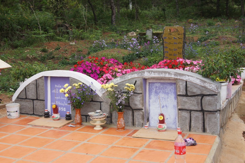 C̣n về Đồi thông hai mộ. Mặc dù sau nầy, tôi có nhiều lần đi Đà Lạt theo Tour hoặc đi với gia đ́nh, nhưng chưa có lần nào trở lại từ sau chuyến thăm năm 1990, cho nên tôi vẫn không biết hai ngôi mộ đă được xây lại. Trong trí nhớ của tôi vẫn nhớ h́nh ảnh hai ngôi mộ đất, hoặc một nấm mồ lẻ loi, bên cạnh là một hố huyệt đă lấy cốt.