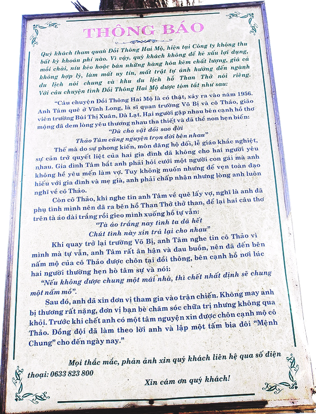 Và cũng có tấm biễn ghi lại câu chuyện t́nh nầy: