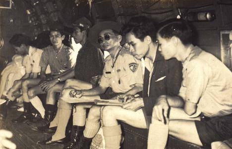 Chuyến đi đó, do anh Nguyễn Hữu Huỳnh liên hệ xin một chuyến bay quân sự DC3, chuyến bay nầy do phi công Mỹ lái, chúng tôi được phi công dễ dăi cho phép ra pḥng lái của phi công để nh́n cảnh vật phía trước trời mây bao la hoặc phía dưới là rừng núi hay biển xanh mênh mông.