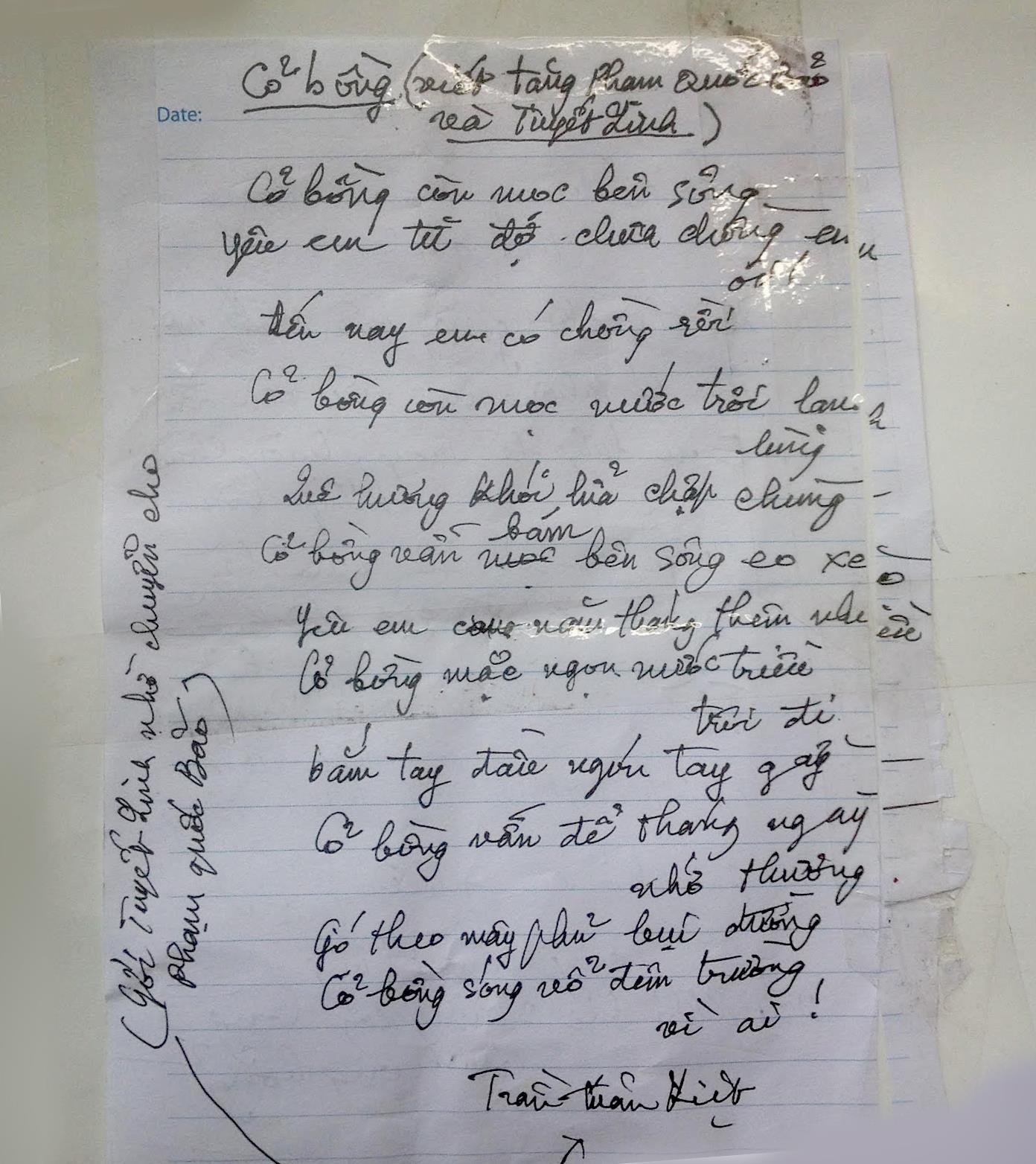 Mấy tuần sau gặp lại, anh trao cho tôi bản chụp lại tập thơ Lời Gửi Cây Bông Vải của Trần Tuấn Kiệt. Cuốn thơ được cắt xén đóng gói bao bì thật trau chuốt mà chữ nghĩa trong đó còn khá rõ ràng.., chỉ có điều không phải là nguyên bản thôi!