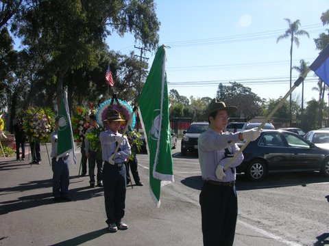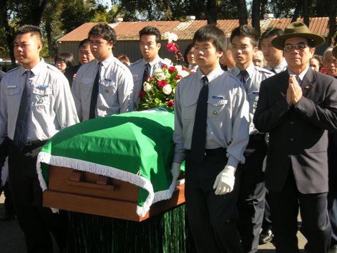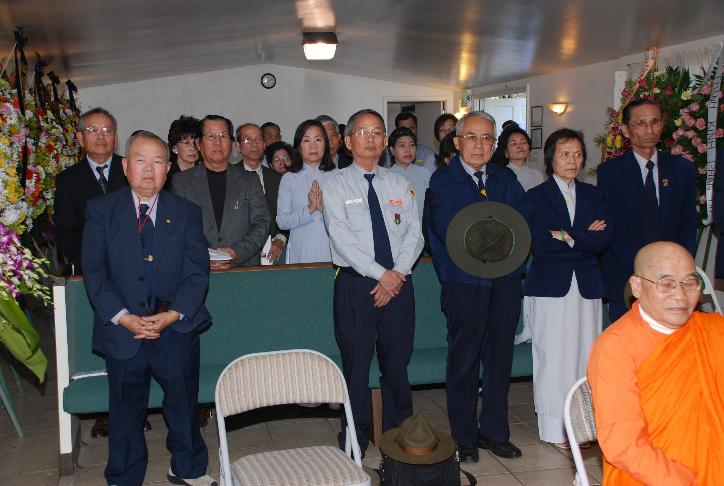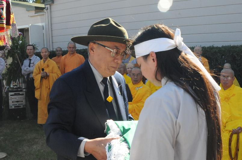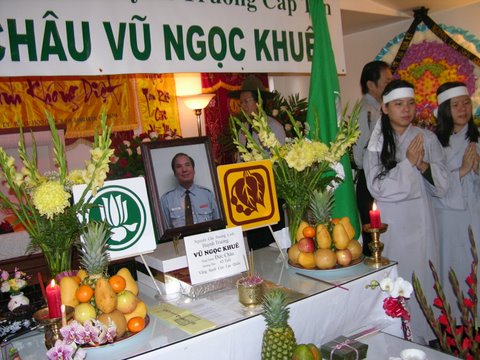 Trưởng Ban Hướng Dẫn GĐPTVN Tại Hoa Kỳ Trao cờ phủ áo quan cho gia đ́nh Đức Châu
