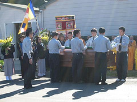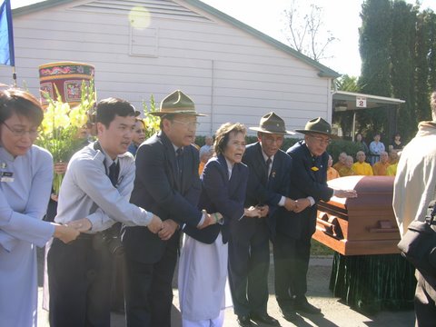 Các Trưởng Vĩnh Nghiêm đi hai bên Áo quan của Trưởng Khuê gồm có: Trưởng Trần Chí Trung, Đặng Trần Hoa, Phạm Minh Tâm