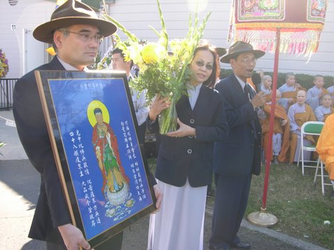 Nguyễn Hoài (bưng khai lễ) và Lê Đ́nh Du (thỉnh tượng Phật)