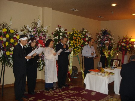 Trưởng Lê Văn Mạnh và các Trưởng Ái Hữu Vĩnh Nghiêm đang tụng kinh Cầu siêu