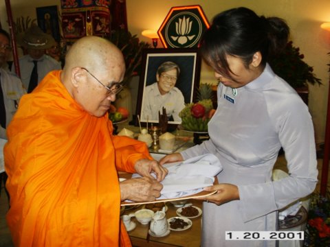 H.T. Thích Tâm Châu Thượng Thủ GHPGVNTTG phong cấp Dũng cho Trưởng Tâm Ḥa Ngô Mạnh Thu