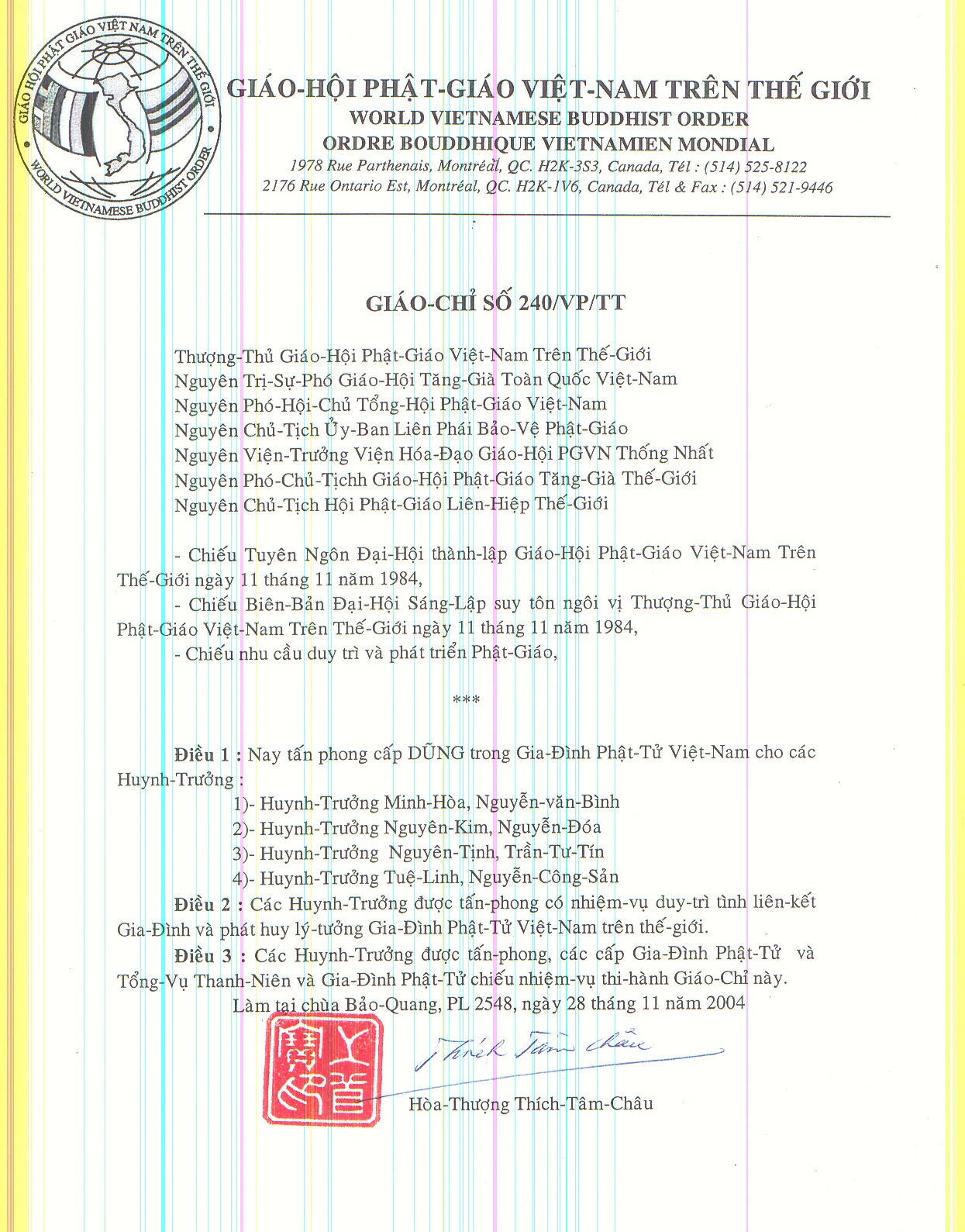 tấn phong cấp Dũng Gia Đình Phật Tử Việt